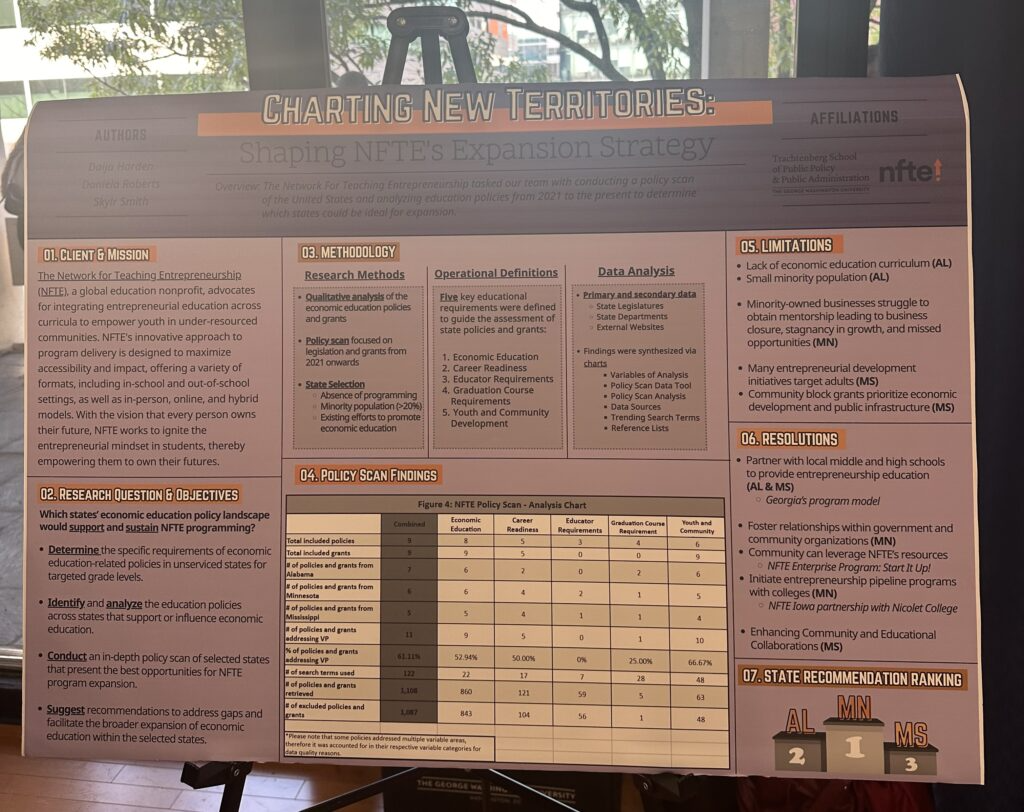 NFTE partnered with a team of graduate students from the George Washington University Trachtenberg School of Public Policy and Public Administration to conduct a policy scan across the U.S.